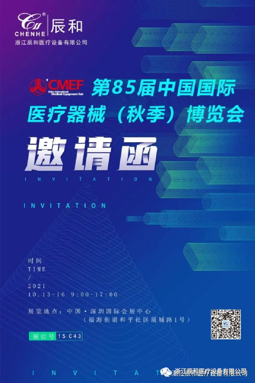 第85屆中國國際醫療器械(秋季)博覽會將于2021年10月13日在深圳國際會展中心召開。浙江辰和醫療設備有限公司將攜公司醫療產品參展。本屆展會中,浙江辰和醫將展示一次性使用連接